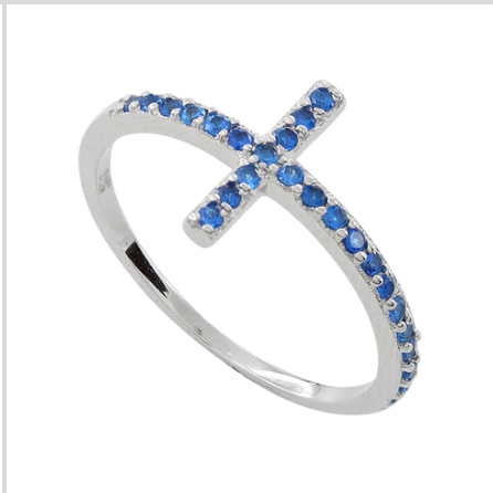 Sterling Silver Blue CZ Cross